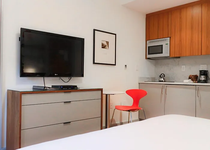 Situado en el barrio South Beach, The West Ave Studios Miami Beach está al lado del Britto Central y a 5 minutos en coche del Parque South Pointe. Acceso a internet de alta velocidad se proporciona en todas las habitaciones.